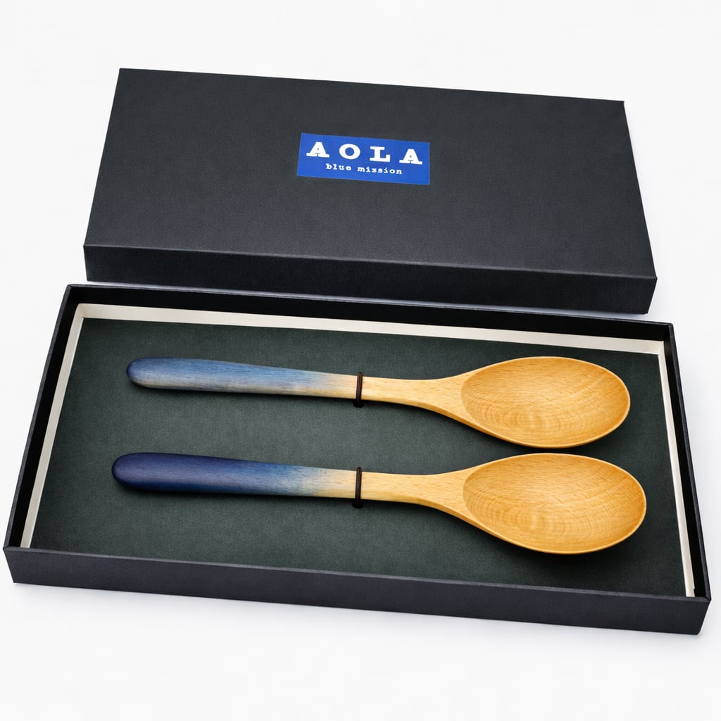 やわらかな木肌が魅力のブナ材に、日本の伝統色「藍」をグラデーションで染め上げました。