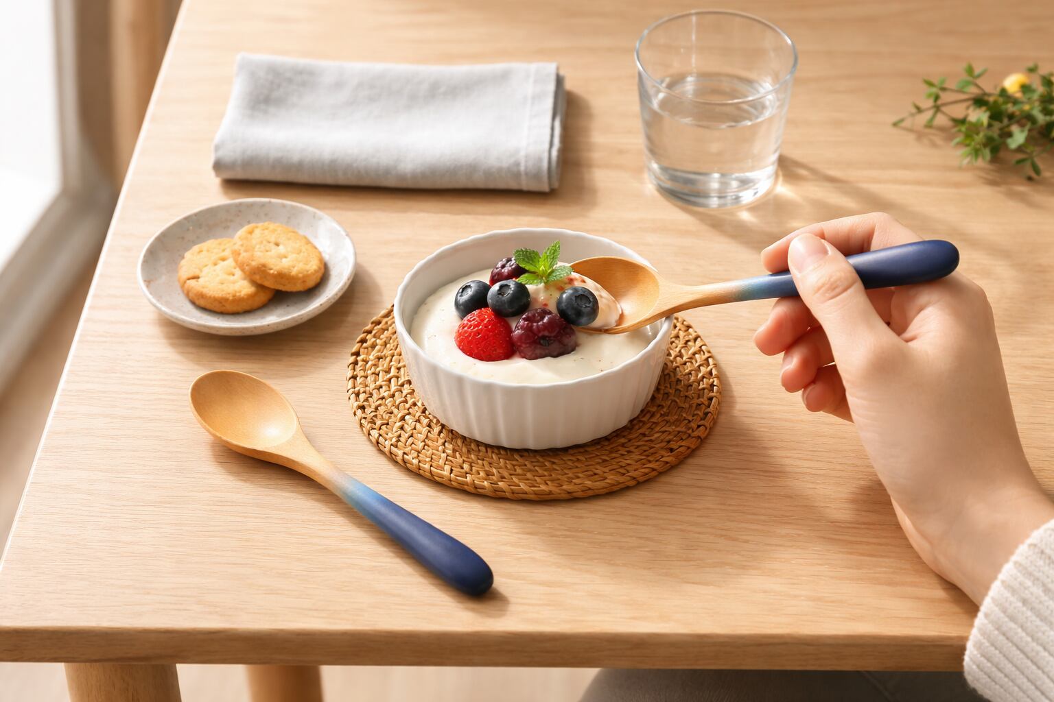 軽量で扱いやすく、口当たりもやさしい天然素材です。